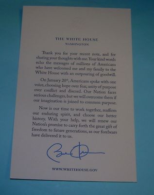 Title (ebay affiliate link): OFFICIAL WHITE HOUSE PRESIDENT BARACK OBAMA 2009 EARLY RESPONSE CARD RARE