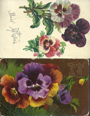 Title (ebay affiliate link): Lot of 2 Purple Red & Yellow Pansies Vintage Postcards ~B