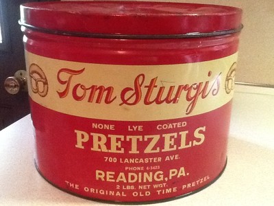 Title (ebay affiliate link): Vintage Tom Sturgis Pretzel Tin - Lancaster Ave., Reading, Pa.