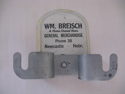 VINTAGE NEWCASTLE NEBRASKA NE BREISCH STORE PHONE 38 BROOM HOLDER