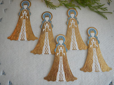 VINTAGE CHRISTMAS PAPER DIE CUT VICTORIAN MARY W/ BABY Embossed Lot Set 5