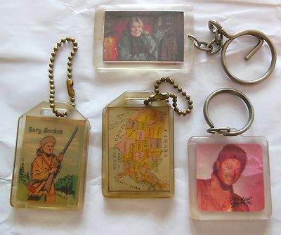 Title (ebay affiliate link): 4 Vintage keychains, Davy Crockett, MASH, Michael Jackson, map USA