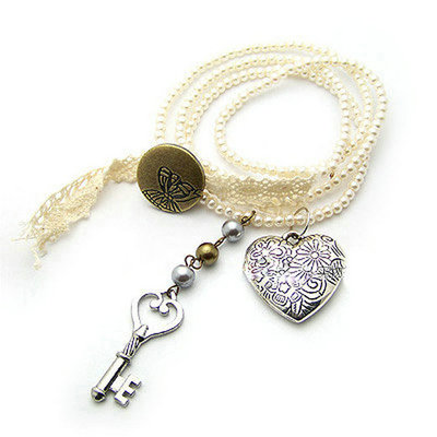 Title (ebay affiliate link): Hot Woman Unique Jewelry Pearl Necklace Heart Key Pendant Vintage Chain