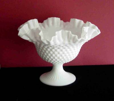FENTON MILK GLASS HOBNAIL PEDESTAL RUFFLED BOWL