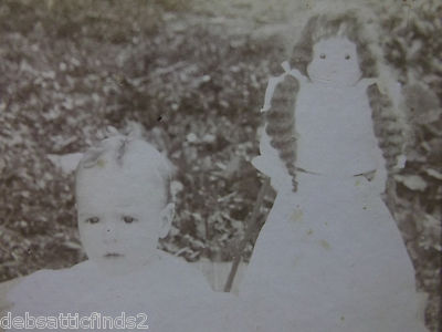 Title (ebay affiliate link): Cute Lil Baby w/ Large Doll -Long Pigtails -Blanket -Small Antique Cabinet Photo