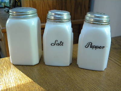 Vintage Art Deco Milk Glass McKee? Salt Pepper + extra