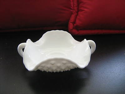 Fenton White Milk Glass HOBNAIL 2-Handled Bowl EXCLLNT