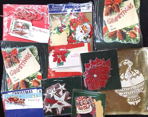 Title (ebay affiliate link): 10 Pkgs. Dennison Norcross Vtg CHRISTMAS Tags SEALS Stickers Lot 110+ Scrapbook