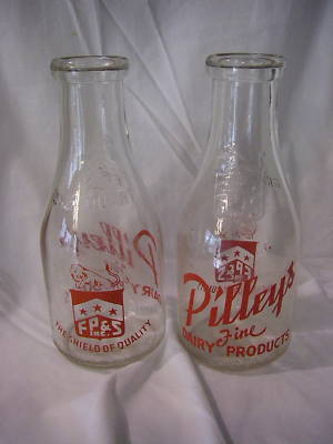 2 Vintage 1 Quart Glass Milk Bottles Pilleys Dairy