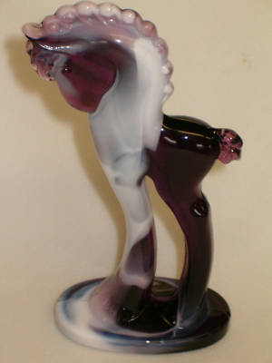 AMETHYST PURPLE AND MILK SLAG ART GLASS PONY HORSE DECO