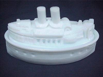 FLACCUS CO. MILK GLASS BATTLESHIP COVERED DISH~C. 1890s