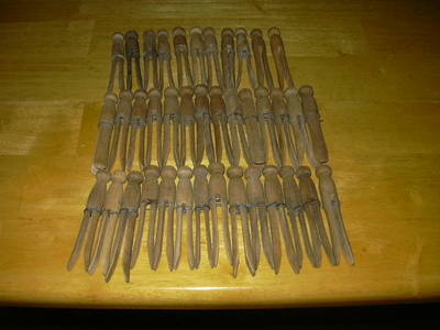 Title (ebay affiliate link): 39 VINTAGE ROUND WOOD CLOTHES PINS - WIRE WRAPPED