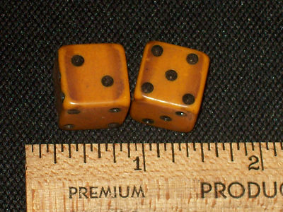 Title (ebay affiliate link): VINTAGE PAIR OF DARK BUTTERSCOTCH COLORED DICE/ OLDIES !!
