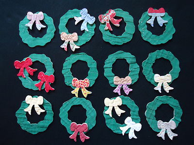 12 VTG CUTTER QUILT CHRISTMAS WREATHS & 15 BOWS - SCRAPBOOKING