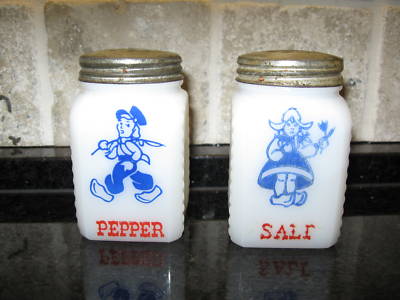 Vintage Milk Glass Dutch Children Salt & Pepper Shakers