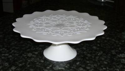 Beautiful Vintage White Milk Glass PEDESTAL CAKE PLATE