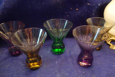 GRANDMAS GLASS SET OF 5 3.5 INCH COLORED GLASSES