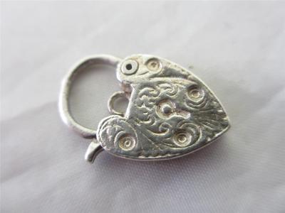 Title (ebay affiliate link): VINTAGE ENGLISH CHARM c1960 STERLING SILVER ENGRAVED HEART PADLOCK CLASP