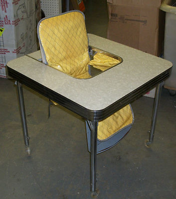 Title (ebay affiliate link): Vintage 1950s STORKLINE High Chair TODDLER Size GRANITE & CHROME TABLE Casters !