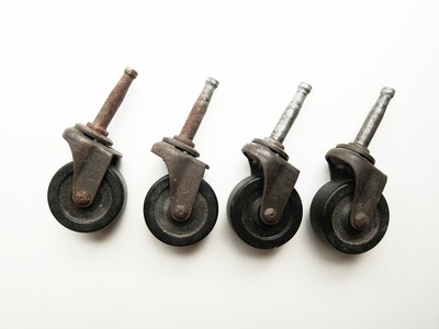 Title (ebay affiliate link): Set of 4 Vintage Matching Industrial Caster Cart Table swivel Wheels