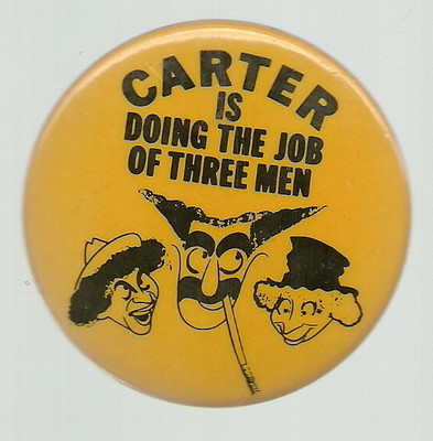 MARX BROTHERS, CARTER IS DOING THE JOB OF 3 MEN REAGAN PIN