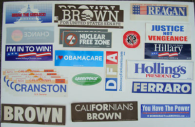 Title (ebay affiliate link): 43 lot vintage political bumper stickers clinton nixon brown hollings mondale