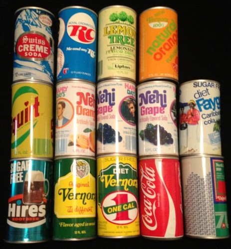 Title (ebay affiliate link): Vtg 70s Lot Of 14 Soda Pop Cans Coca Cola 7UP Nehi RC Cola Vernors