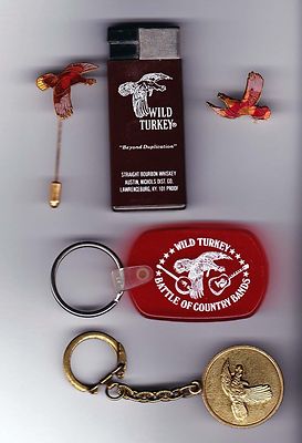 Title (ebay affiliate link): AUSTIN NICHOLS WILD TURKEY LIGHTER, STICKPIN, SCATTER PIN, 2 KEYCHAINS VINTAGE