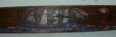 Primitive Vintage Antique Barrel Stave Painting Nautical Ship Landscape Shabby