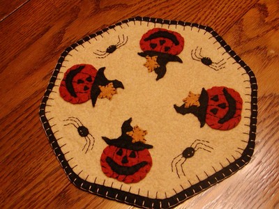 Title (ebay affiliate link): Primitive Candle Mat -Woolfelt Penny Rug-Pumpkin 9"