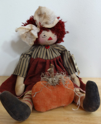 Title (ebay affiliate link): PRIMITIVE RAGGEDY ANN ANNIE DOLL HARVEST PUMPKIN FOLK ART FALL DOLL