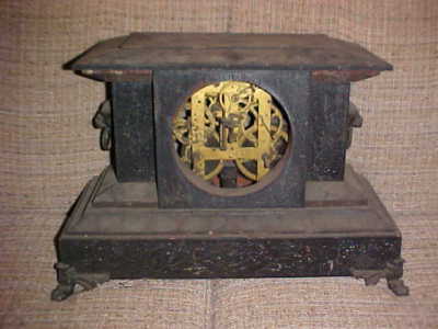 ANTIQUE WOODEN INGRAHAM MANTLE CLOCK, PARTS OR REPAIR
