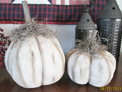 Title (ebay affiliate link): Primitive Fall Halloween Folk Art Gathering of White Pumpkins