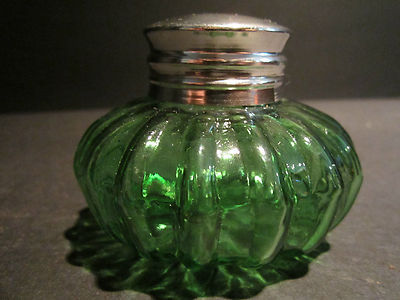 Vintage 19th C Antique Style Round Solid Green Thick Glass Inkwell Ink pot