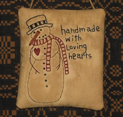 Primitive Stitchery Hanger ~ Snowman ~ Handmade with Loving Hearts ~ Winter