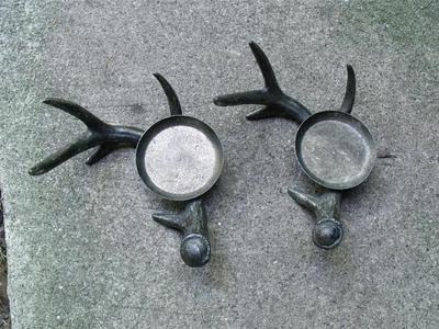 Title (ebay affiliate link): Gorgeous Primitive Old Vintage Deer Antler & Tin Candle Holders Dark Silver