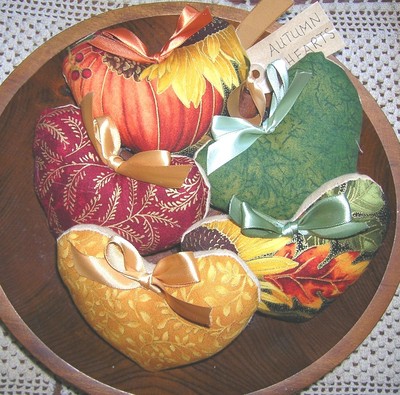 Title (ebay affiliate link): Primitive AUTUMN Leaf Heart Ornaments Fall Colors Heart Tucks Country Decor