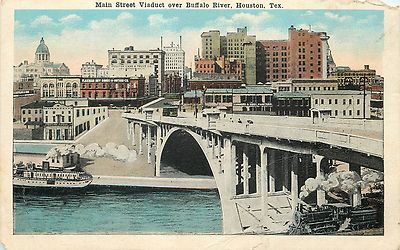 Title (ebay affiliate link): Houston Texas~Main Street Viaduct~Steam Locomotive~Trolley~Flaxman Dry Goods~'15