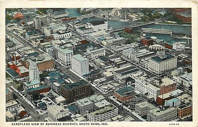 Title (ebay affiliate link): South Bend Indiana~Aeroplane View Business District~Rooftops~River~1934 Postcard