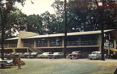 Title (ebay affiliate link): Grand Beach Michigan~John Rhode Civic Center~Nice 1950-60s Cars~Girl on Bicycle