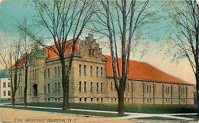 Title (ebay affiliate link): Medina New York~The Armory~Four Story~Lookouts~Brown Stone~1907 Postcard