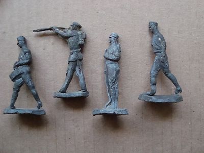 Title (ebay affiliate link): LOT OF FOUR DIFFERENT LEAD TOY SOLDIERS. WWII ERA? DRUMMER, 2 RIFLEMEN & MARCHER