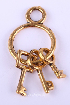 25Pcs Tibetan Retro Antique Golden Key Chain with 3keys Pendant