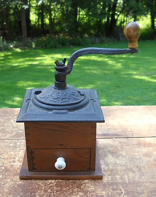 Title (ebay affiliate link): Primitive Vintage Wood & Cast Iron Coffee Grinder With Wood Drawer