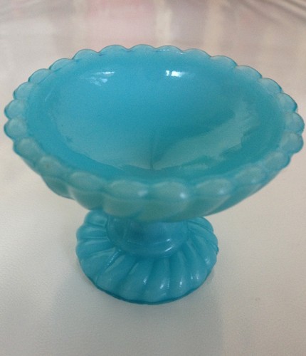 French Blue Milk Glass Pedestal Open Salt