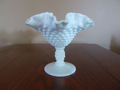 Title (ebay affiliate link): Vintage Milk Glass Pedestal Compote - Hobnail and Ruffled Rim