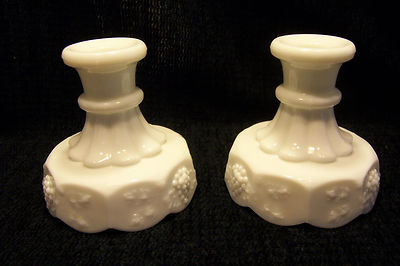 Title (ebay affiliate link): Pair Vintage Signed Westmoreland Milk Glass Paneled Grape Candle Holders