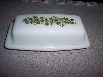 Title (ebay affiliate link): PYREX WHITE MILK GLASS "CRAZY DAISY" OBLONG BUTTER DISH WITH COVER