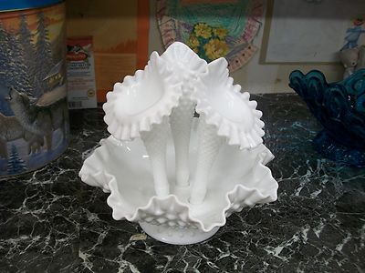 Title (ebay affiliate link): VINTAGE LARGE FENTON EPERGNE WHITE MILKGLASS HOBNAIL 3 HORNED ABOUT EARLY 50'S