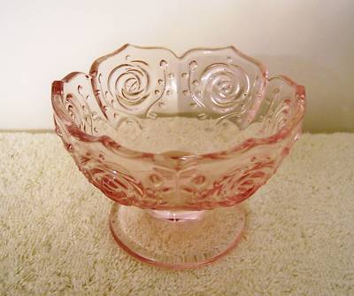 PINK DEPRESSION GLASS PEDESTAL FOOTED BOWL DISH